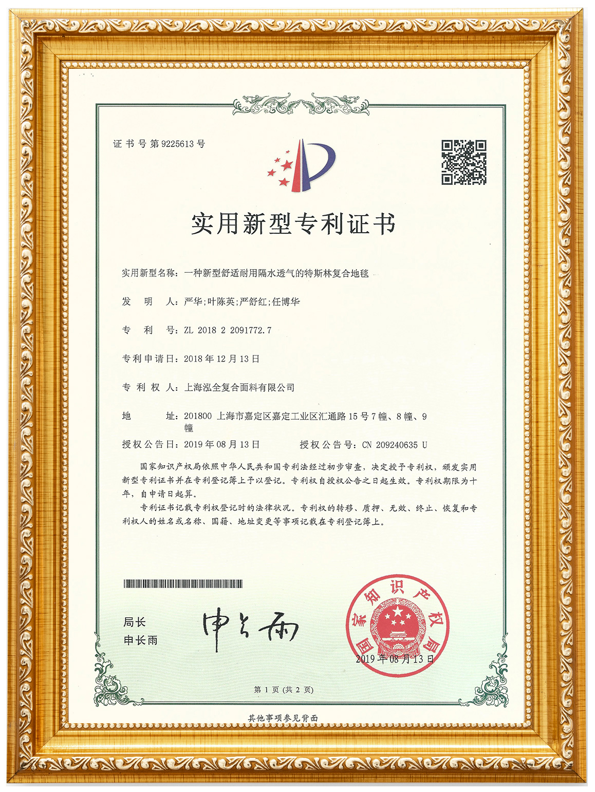 上海泓全復合面料有限公司始創(chuàng)于2009年,是集研發(fā)、設計、生產、銷售、服務為一體的織布復合加工生產型企業。專業從事家紡面料、服裝面料、箱包面料、地毯面料和醫(yī)療護理、充氣產品、家居用品、廣告布等各種面料的復合。公司目前生產的成品涵蓋家紡系列、家居系列、老年人和嬰幼兒護理系列、醫(yī)療護理系列等。公司坐落于上海市嘉定工業區,西鄰昆山,北鄰太倉,交通便利,廠房面積達10000多平方米。